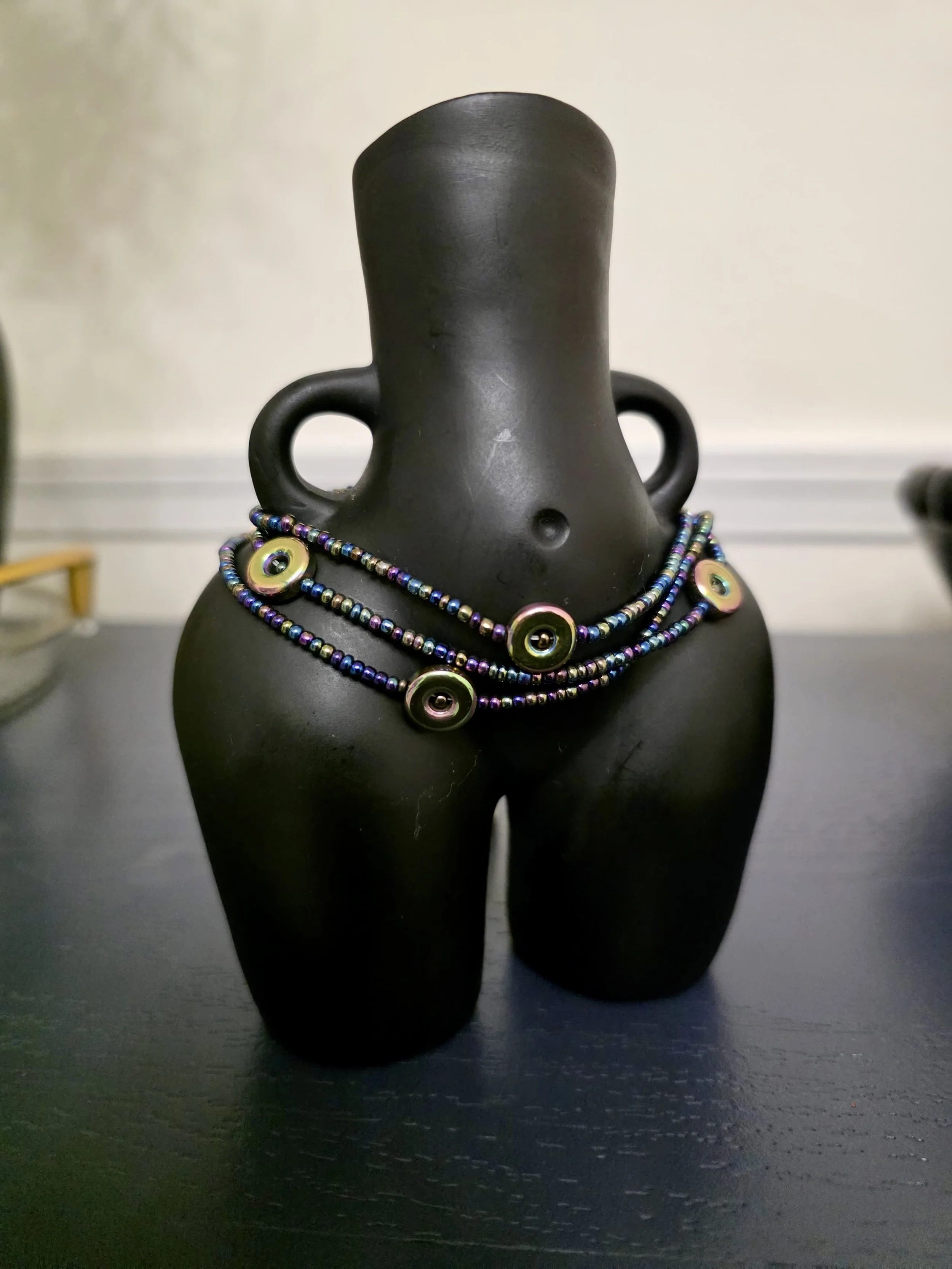 Waistbeads are worn on the waist or hips, wherever feels most aligned for you. There is no “right” placement — your body, your intention.